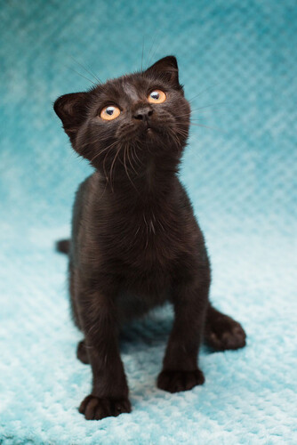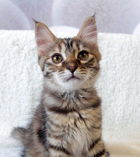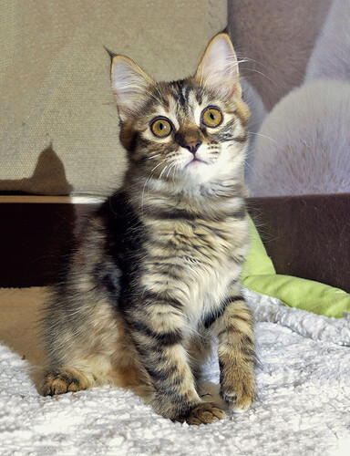 Искорка любит покушать, погонять мячик и поваляться на мягкой лежаночке. Активная, игривая, шебутная, полностью соответствует своему имени. Искра обладает шикарного окраса набивной шубкой и невероятными желтыми, почти оранжевыми, глазами! Девочка хорошо ладит с сородичами, с людьми поначалу насторожена, но потом ластится и поет песенки при каждом удобном случае.