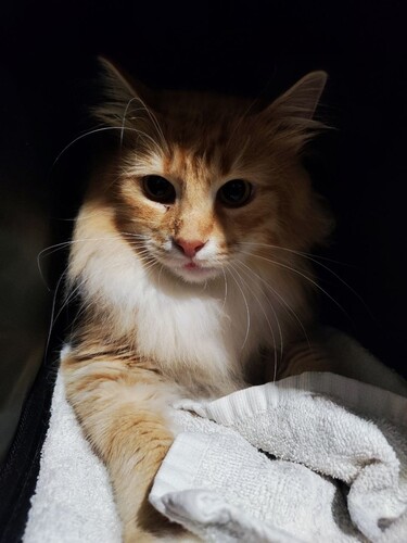 Ей примерно 3 года. Найдена в крайне истощённом состоянии, откормлена, сейчас совершенно здорова, стерилизована, анализы на инфекции отрицательные. Характер нордический.