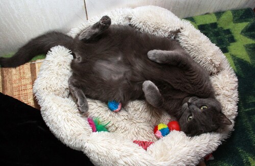 Котик очень ласковый, спокойный, не склонный к глупому баловству. Человека с таким мечтательным характером назвали бы интровертом. Грей - большой любитель посидеть, а еще лучше полежать в уютном уголочке. Он принимает при этом самые живописные позы, создавая в доме спокойную, уютную, мирную атмосферу.
