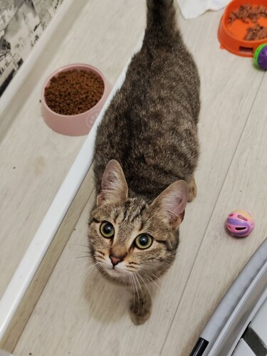 Отдам кошку Фриду, беспородную полосатку, возраст 4-х лет. Короткошерстная. Визуально здорова. Привита, от блох/глистов обработана, стерилизована, имеет вет. паспорт. По характеру общительна, дружелюбна, любит поболтать при встрече, к знакомым собакам относится спокойно, с кошками уживается. Проживает в помещении, ходит в лоток с наполнителем. «подробнее…»