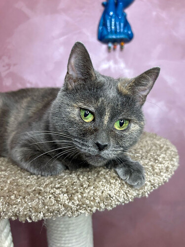 Афина - потрясающая киска! Не только красивая, но и умная. Глядя в её глаза, так и слышится: "Заберите меня домой, я много места не займу! "