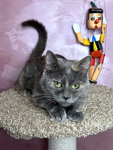 С удовольствием подставляем для почесушек бока и шейку, бодается и урчит. Ненавязчивая, прекрасно может развлечь себя и сама.