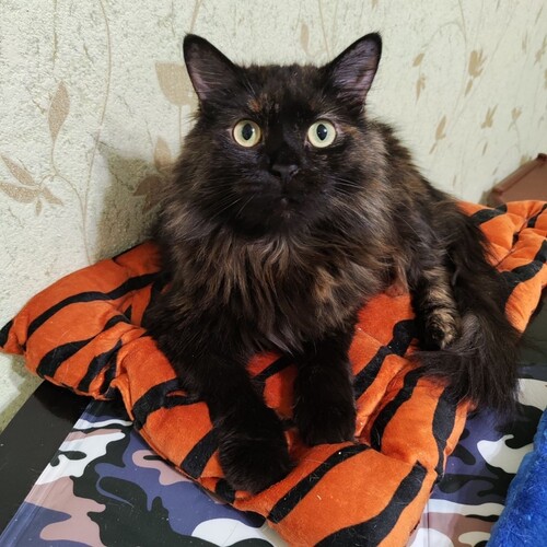 Ищет свой дом очень спокойная, ласковая и аристократичная кошка Анфиса. Молодая, длинношерстная милая кошка. Она отлично уживается с другими животными, абсолютно не агрессивная. Правда размер у неё больше среднестатистической кошки. Знает лоток, ест сухой корм. Есть свежие анализы на вирусы: здорова. Отлично подойдёт в семью с другими животными. «подробнее…»