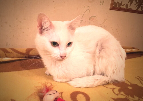 Сейчас Альбус совсем здоров, и даже успел немного наесть себе бока. Потихоньку отрастает, восстанавливается беленькая шубка, возвращается очарование. Яркие светло-зеленые глаза добавляют Альбусу шарма.