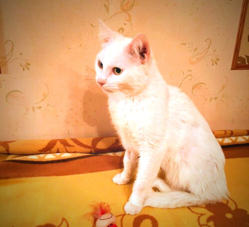 Альбус — зеленоглазый белый котик, добрый, ласковый, умный. Ах, каким красавцем он бы был, если бы судьба была хотя бы немного добрее к нему! Грязный и худой, с больными глазами и свалявшейся шерстью, кот был найден на улице едва живым. Как он был благодарен за спасение, как покорно терпел уколы и глотал таблетки! На приеме в клинике выяснилось, что у Альбуса больные зубы, и почти все зубки ему пришлось удалить.