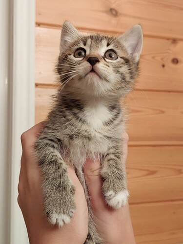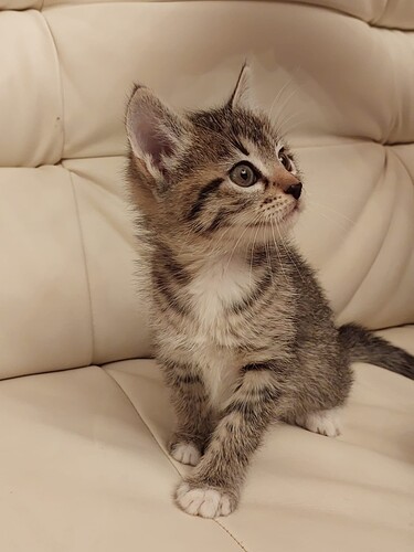 Девочка. Ей 1,5 месяца. Игривая, но в тоже время спокойная. Лоток на отлично. Ест сухой и влажный корм. Отдаётся взрослым ответственным людям.