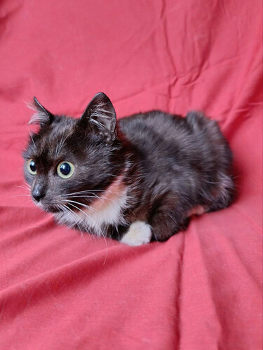 Настоящая леди. Такая же спокойная, но смелее брата: первой идёт знакомиться, исследует территорию и мурлычит без остановки
