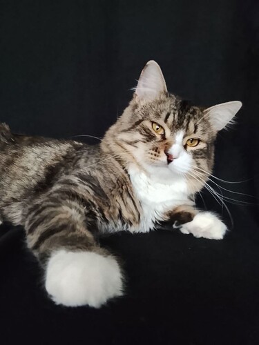 Рафу примерно 1.5-2 года, он здоров и отлично знает лоток.