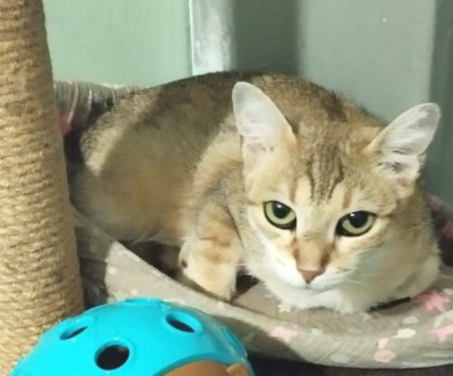 Миниатюрная кошечка Кася отличается необычайным изяществом, редким песочным цветом шерстки и смешными, большими ушками. Она похожа на породистую абиссинку или на лисичку-фенека.