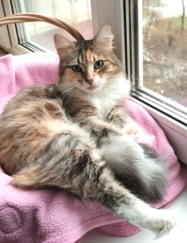 Кошечка молодая - возраст 3 года. Здорова, привита, стерилизована. Есть ветеринарный паспорт. Анализы на вирусы - отрицательные. Приучена к лотку. Ладит с другими кошками.