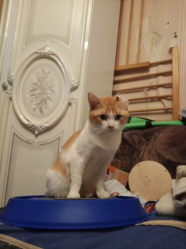 Умный котик один из первых зашел в котоловку покушать. Он очень любопытный, но и осторожный одновременно. Смелый с другими котиками, но пока опасается человека. Игривый очень, аппетит отличный, лоток освоил прекрасно.