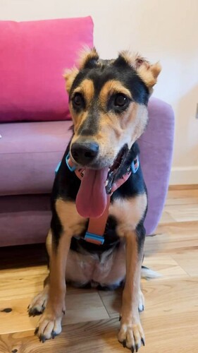 Барри около 4 лет. Он — метис овчарки, активный пёс с энергией, умом и добрым сердцем.