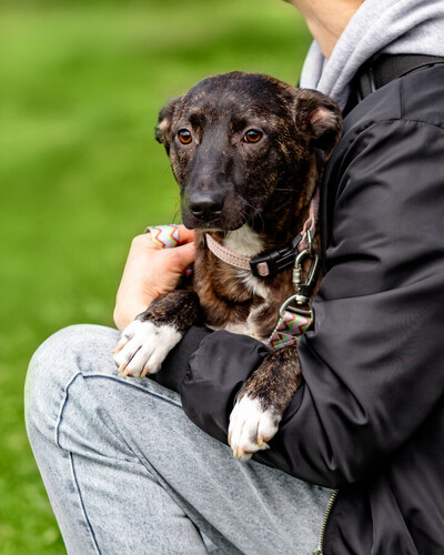 Любвеобильная малышка, при взгляде на которую, невозможно скрыть улыбку, попала в приют Дубовая Роща в январе 2023. Одри еще подросток, ей 1,5 года, она немного нескладная и очень смешная девочка. Одри станет прекрасным другом своему новому владельцу и его семье. С первых дней она проявила себя как любопытная, шустрая и умная собачка. Уже знает команды сидеть, лежать, ко мне. Очень комфортно гуляет без поводка и бежит сразу на подзыв. Привита, стерилизована, чипирована.