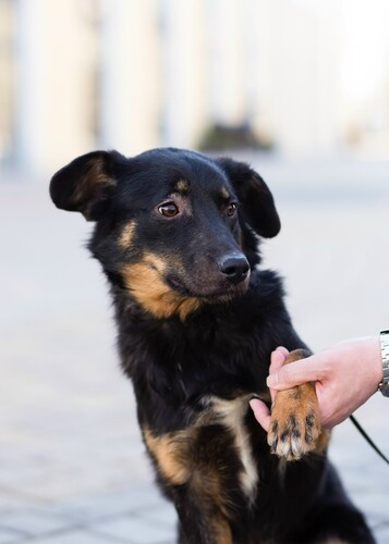 Молли — классическая чёрная собака-метис: острая мордочка, висячие уши, белый “галстук” на груди и удивительно умный взгляд. Эти собаки отличаются дружелюбным, весёлым и очень тёплым характером. Молли — именно такая, но при этом особенная.