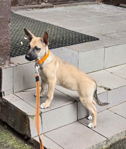 Возраст примерно 7-8 мес., вес сейчас 23 кг. Будет крупной собакой. «подробнее…»
