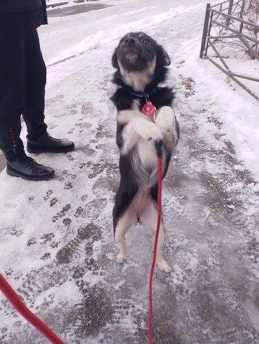 Весит всего 5-6 кг. Возраст 6 месяцев. С другими животными хорошо ладит.