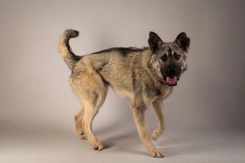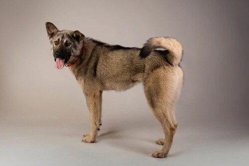 К слову он совсем не крупный - всего лишь 50 сантиметров в холке (чуть ниже колена) и весит около 15 кг, так что расти больше не будет в силу возраста, т.к. ему около 1 года, будет набирать только массу.