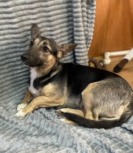 Пристраивается в самые добрые руки маленькая добрая собачка Барабулька. Мама у нее такса, папа овчарка.