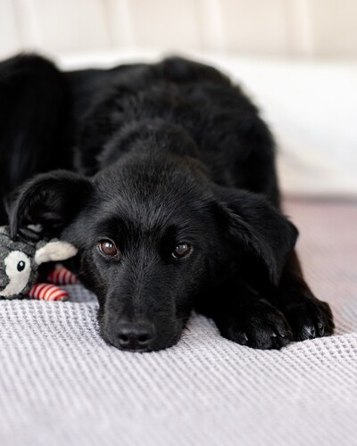 Молли очень чувствительная, ориентированная на человека, быстро учится и уже знает несколько команд, старается угадать каждое ваше желание. С ней удивительно легко и тепло.