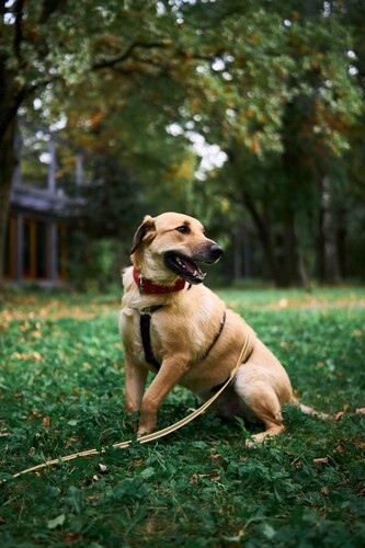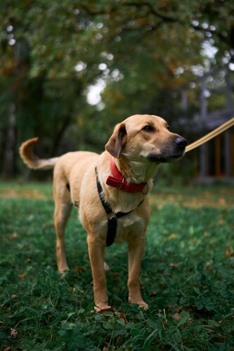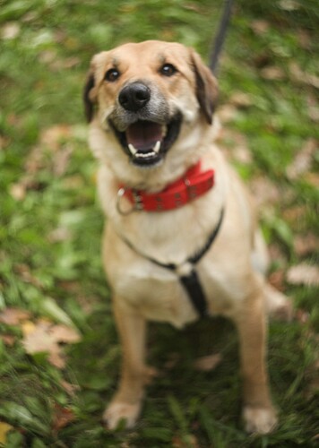 Тесса знает амуницию, терпит туалет и сразу все делишки в парке делает.. Отсюда вывод - эта кремовая малышка была домашней! У Тессы уже есть опекун, она уже переехала в тёплый вольер и уже гуляет на общем выгуле
