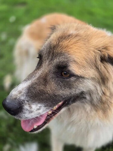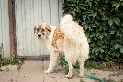 Возраст - примерно 3-4 года. Весит 20-25 кг. На фото выглядит крупнее. Предположительно метис колли или РПБ. Спасён от смерти в усыпалке г. Гори.