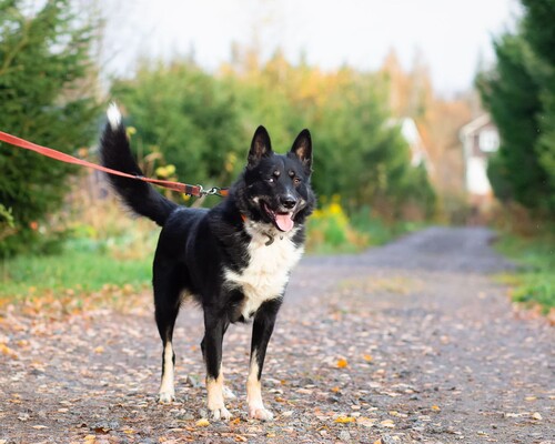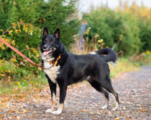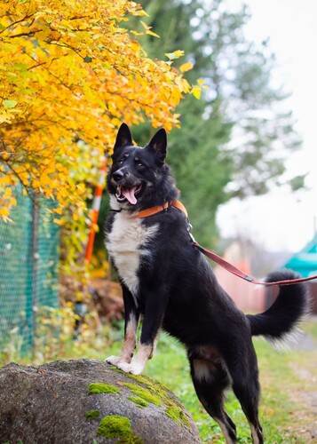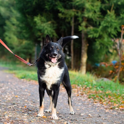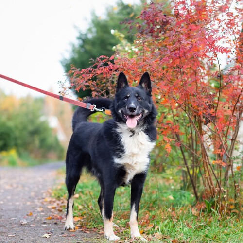 К людям со всей душой, на поводке ходит хорошо, спокойно остаётся один.