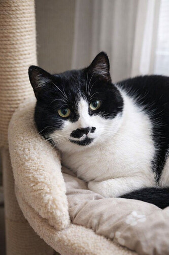 "Привет! Я Буся и я очень хочу быть домашней кошечкой. Мне 2,5 года. Раньше я жила на промзоне, среди множества машин. Там было опасно, голодно и очень холодно зимой. Одна неравнодушная женщина забрала меня оттуда и устроила на передержку. Я очень благодарна ей за это, но это временный приют. А мне бы так хотелось обрести постоянный дом, иметь хозяев, свернуться клубочком около родных людей и помурчать от удовольствия. Я немного застенчивая, но быстро откликаюсь на доброе отношение. Хожу в лоток, привита, стерилизована, обработана от паразитов. Посмотрите на мою яркую чёрно-белую шубку, симпатичную мордочку. Надеюсь, я вам понравлюсь. Обещаю быть другом и компаньоном. Мамы, папы, бабушки и дедушки! Обратите на меня внимание, пожалуйста! Очень жду вас."