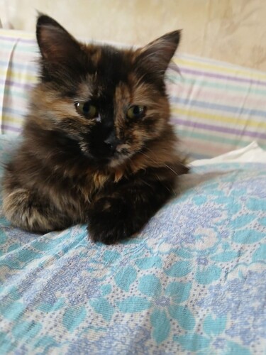 Ей около года, стерилизована, привита, лоток 5+. Она не будет вам надоедать, а лишь ожидать когда вы обратите внимание на тихое обожание кошечки с красивой шубкой и янтарными глазками. Присмотритесь, эта цветная кошечка, обязательно принесет вам счастье и достаток.
