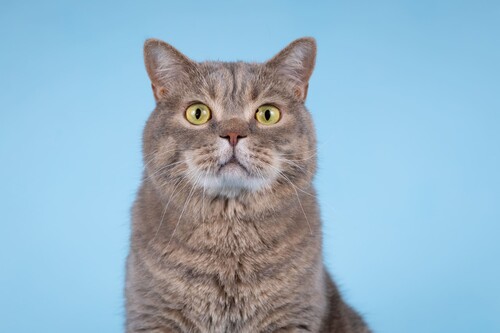 Добродушный шотландец Митенька очень красивый котик-мурлыка в роскошной шубке нежных золотистых оттенков. У пушистика умилительная мордочка - круглые удивлённые глазки и курносый носик.