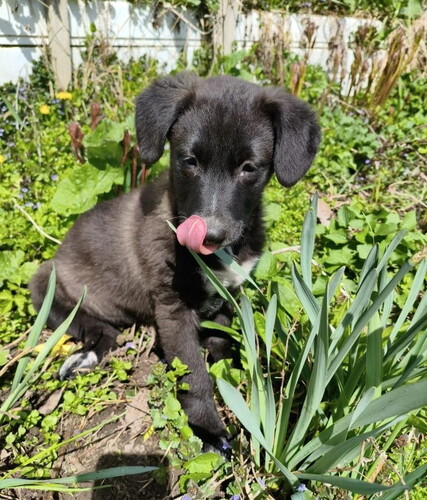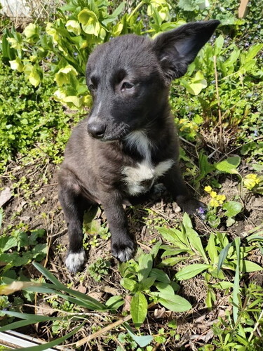 Черненькая с белыми лапками Герда ищет дом. Для этого возраста малышка совсем небольшая и вырастет красивой собачкой маленького размера.