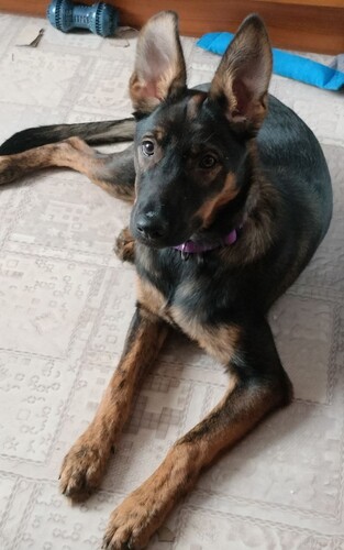 Зовут ее Луна, она небольшая (поменьше среднего), ласковая, игривая. Ей 1 год, уже стерилизована. 20 кг, примерно 45-50 см в холке.